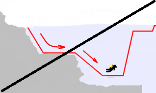 Výstup je vždy bezpečnejší, ak mierime k hladine popri reliéfe dna pozdĺž stúpajúcej podvodnej steny, či v blízkosti lana s bójkou. Aj kotevná reťaz sprievodného plavidla, umožňuje lepšiu kontrolu výstupovej rýchlosti a byť nápomocná v prípade riešenia problémov v noci alebo za sťaženej viditeľnosti.